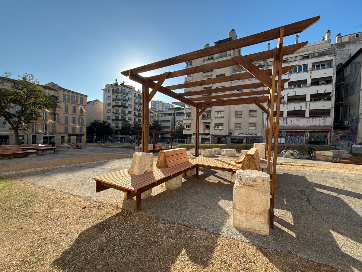 Porté et financé par la Métropole Aix-Marseille-Provence, le projet de transformation de la place de la Providence vient de franchir une nouvelle étape. Depuis le 20 novembre, l’espace est ouvert au public, avec des aménagements transitoires. Bancs, ombrières et talus ont métamorphosé cet ancien parking en une place accueillante.