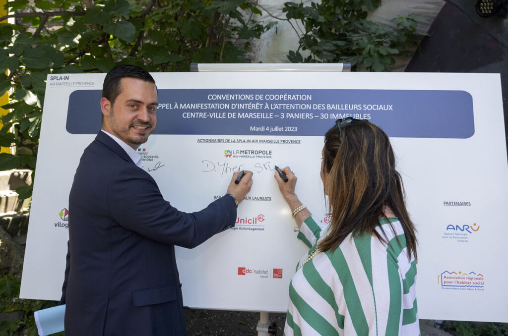 Ce mardi 4 juillet, la Société publique locale d’aménagement d’intérêt national Aix-Marseille-Provence (SPLA-IN AMP) réunissait les bailleurs sociaux lauréats du premier appel à manifestation d’intérêt. Une rencontre organisée pour la signature des conventions de coopération, point de départ opérationnel de la réhabilitation durable en logements locatifs sociaux d’une première « vague » de 30 immeubles dégradés dans le centre-ville de Marseille.