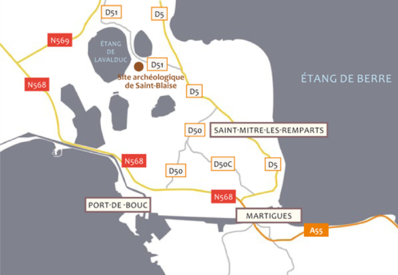 Le site archéologique de Saint-Blaise est géré par la Métropole Aix-Marseille-Provence. Il est situé sur la commune de Saint-Mitre-les-Remparts, dans le département des Bouches-du-Rhône, entre Istres et Martigues. Saint-Blaise est à 40 km d’Arles, 50 km de Marseille et 55 km d’Aix-en-Provence.