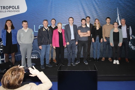 7 lauréats de l’appel à solutions : Les Alchimistes, Movivolt, AgilenVille, La Courserie, Deki e.cologistique, Drive Cube 24/7, Watèa by Michelin, qui ont ensuite pu présenter leur solution à la présidente Martine Vassal et au sénateur Philippe Tabarot.