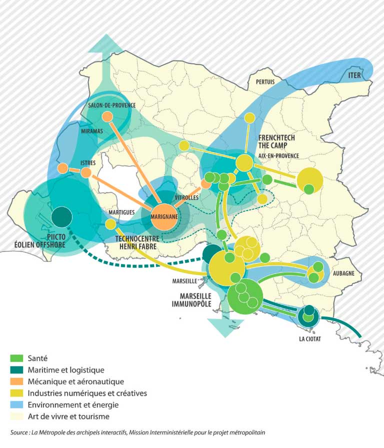 La Métropole contribue au quotidien au développement d’un écosystème propice à la création et au développement des activités au bénéfice de l’emploi. Territoire riche en animations et évènements économiques, adossé au 1er port de France et connectée à un réseau dense d’infrastructures et de plateformes logistiques, la Métropole Aix Marseille Provence s’affirme comme le centre euro-méditerranéen majeur de décisions et d’échanges.