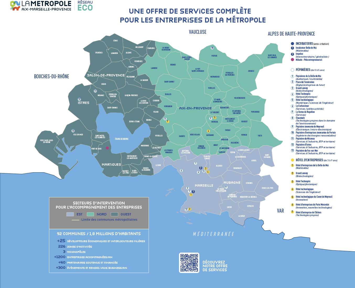 Investir, s’implanter et développer son activité sur Aix-Marseille-Provence, c’est choisir la deuxième métropole française de rang européen, un territoire attractif et en croissance. Répartis sur le territoire, plus de 25 développeurs économiques territoriaux sont disposés à vous guider et faire de votre projet une réussite. Leur expertise et leur connaissance des dispositifs permettent de proposer une offre harmonisée et une qualité de service uniforme sur tout le territoire. Ils œuvrent à stimuler l’emploi tout en offrant un suivi global et simplifié en orientant les entreprises vers les dispositifs métropolitains, régionaux et nationaux, ainsi que vers les opérateurs et partenaires économiques. .
