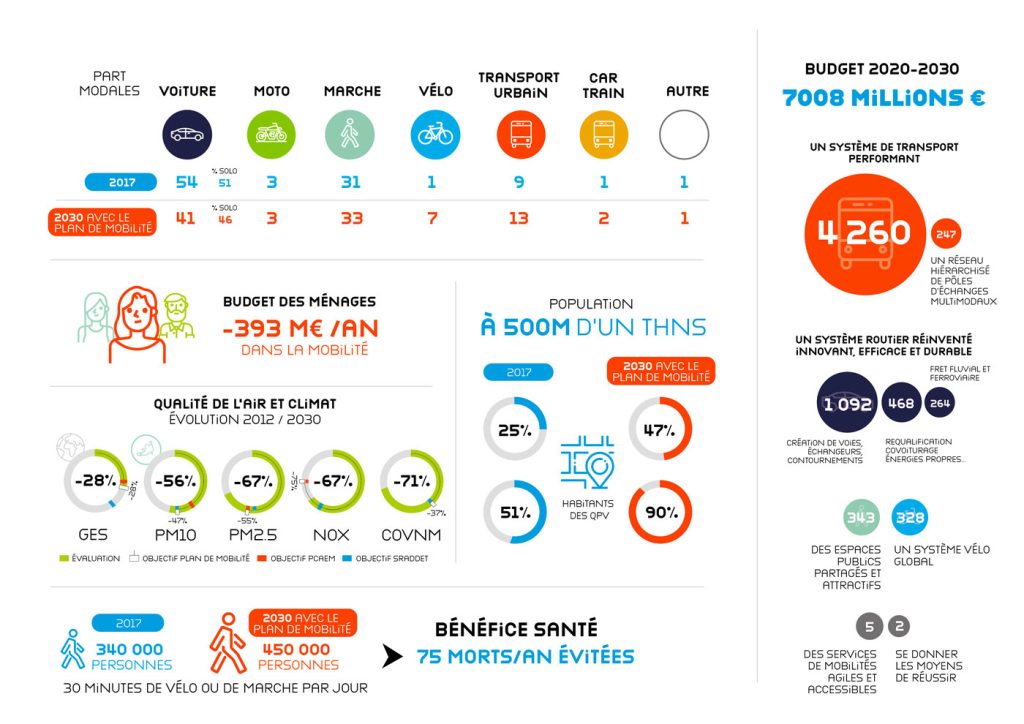 Il présente un plan d’actions qui s’articule avec les différentes démarches stratégiques régionales et métropolitaines. Le Plan de Mobilité s’inscrit dans le cadre du Schéma Régional d’Aménagement et de Développement Durable et d’Egalité des Territoires (SRADDET). Il est en cohérence avec les orientations stratégiques des documents cadres de la Métropole telles que le Schéma de Cohérence territorial (SCOT), le Projet métropolitain, le Plan Climat Air Energie, l’Agenda économique.