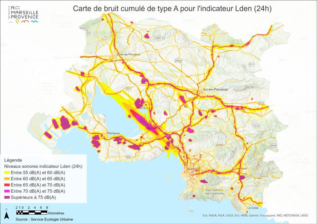 Le bruit est perçu comme une gêne, une nuisance, voire une source de pollution. Selon l’Organisation Mondiale de la Santé, il représente le second facteur environnemental provoquant le plus de dommages sanitaires en Europe derrière la pollution atmosphérique. La Métropole Aix-Marseille-Provence établit conformément, à ses obligations réglementaires, des cartes de bruit stratégiques, ainsi qu’un Plan de Prévention du Bruit dans l’Environnement. Pour aller plus loin, elle a choisi de s’engager volontairement dans la mise en œuvre d’un observatoire métropolitain de l’environnement sonore.