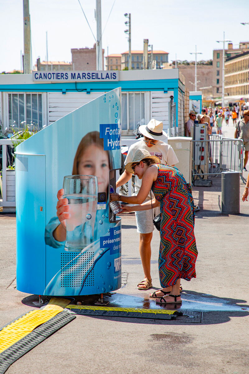 En charge de l’eau, de l’assainissement, mais également de la gestion des déchets, la Métropole déploie, à l’occasion des Jeux Olympiques, 150 fontaines à boire sur le territoire ; des fontaines réfrigérées à haut débit au Vieux-Port, stade Vélodrome, plages du Prado ; ainsi que des bornes de tri complémentaires. Au total, 12 points d’apport volontaire, 56 abri-bacs et 17 corbeilles compactrices seront installés plus particulièrement dans les zones peu équipées, et à proximité des transports publics. 38 sanisettes publiques gérées par la Métropole apporteront aussi un point d’eau potable aux usagers.