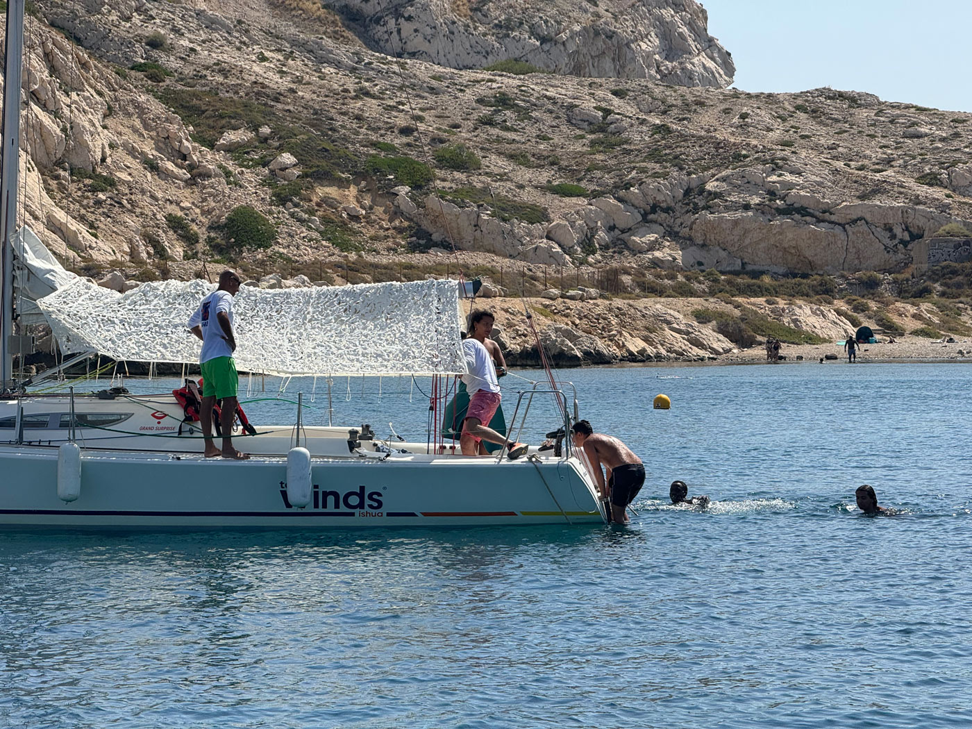 Pour les jeunes présents, cette journée en mer était également une opportunité à ne pas rater. « C’est l’association qui m’héberge, Habitat Humanisme, qui m’a proposé de participer à cette journée, témoigne Olivia, 21 ans. Je trouve, en tant qu’habitante de Marseille, qu’il est très important de profiter de la mer, surtout qu’on n’a pas forcément l’occasion d’y aller gratuitement, et encore moins d’y naviguer ! ». « C’est une expérience unique, affirme de son côté Jad, 19 ans. La voile, c’est quand même une activité assez spéciale, qu’on n’a pas l’occasion de faire tous les jours ! »