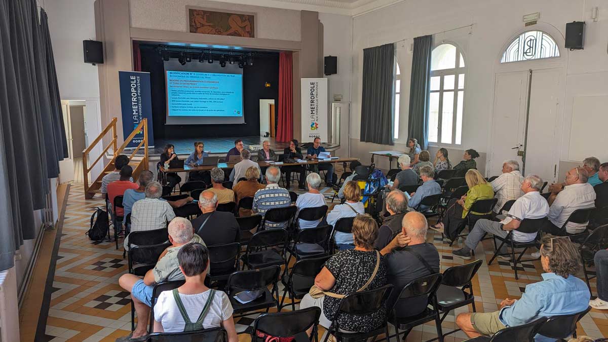 Le 10 juillet 2024, à 18h, une réunion publique s’est tenue à l’Espace des Libertés, à Aubagne. Un moment d’échange en présence notamment de Gérard Gazay, vice-président de la Métropole et maire d’Aubagne, de Michel Lan, conseiller métropolitain délégué à l’urbanisme, ainsi que des maires des communes concernées. Cette réunion était consacrée aux enjeux de l’ouverture à l’urbanisation du secteur des Gargues, dans le cadre de la modification n°2 du PLUi du Pays d’Aubagne et de l’Étoile. Une quarantaine de personnes ont participé aux échanges, qui ont principalement porté sur l’aménagement du nouvel hôpital d’Aubagne et du parc d’activités dédié à la santé et au bien-être. Ces projets renforceront sensiblement l’attractivité économique, l’emploi et l’offre de soins.